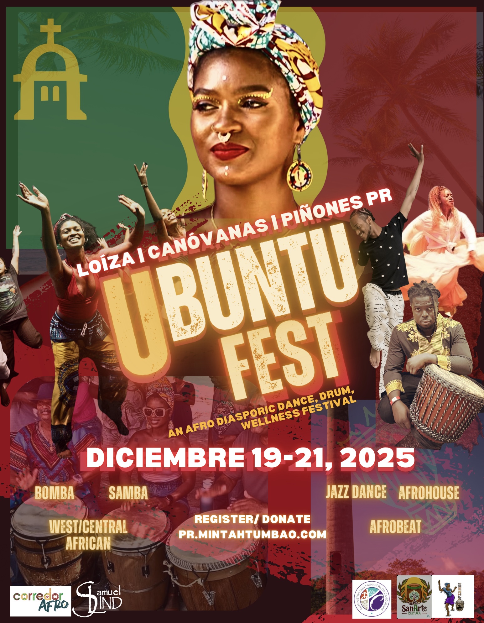 Every contribution has impact. Each "FULL PASS" registration sponsors a local youth of Loíza to attend the full festival as well. Another portion of proceeds supports the Lind Corridor — the nonprofit of renowned Afro-Boricua artist Samuel Lind. Your participation helps ensure that master teachers receive fair pay and that Loíza’s next generation has access to world-class cultural education.