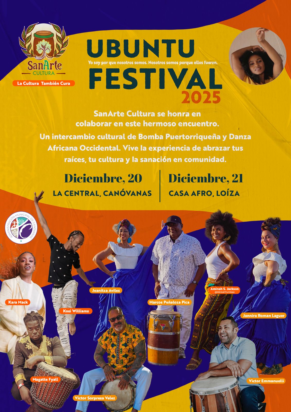 Loíza is the soul of Afro-Boricua culture — a historic maroon community where African and Taíno descendants lived free. Though rich in tradition, Loíza remains one of Puerto Rico’s most under-resourced areas. Ubuntu was created to bridge Loíza’s local community with global Afro-diasporic artists, reconnecting the roots of Bomba to its West African foundation and opening new doors for cultural and economic opportunity.