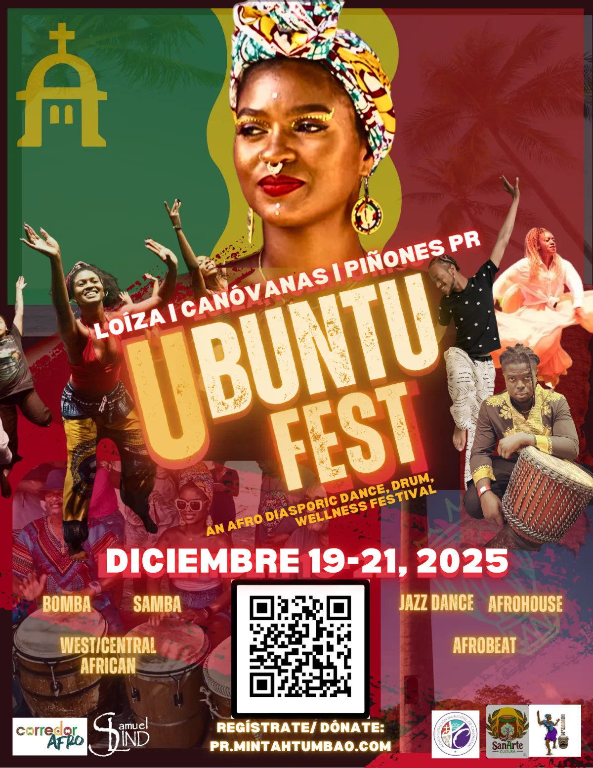 Every contribution has impact. Each "FULL PASS" registration sponsors a local youth of Loíza to attend the full festival as well. Another portion of proceeds supports the Lind Corridor — the nonprofit of renowned Afro-Boricua artist Samuel Lind. Your participation helps ensure that master teachers receive fair pay and that Loíza’s next generation has access to world-class cultural education.